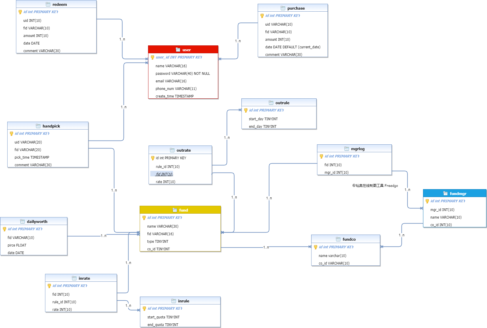 在线工具 Freedgo (opens new window) 制作;使用 navicat 构造数据库模型WARNING